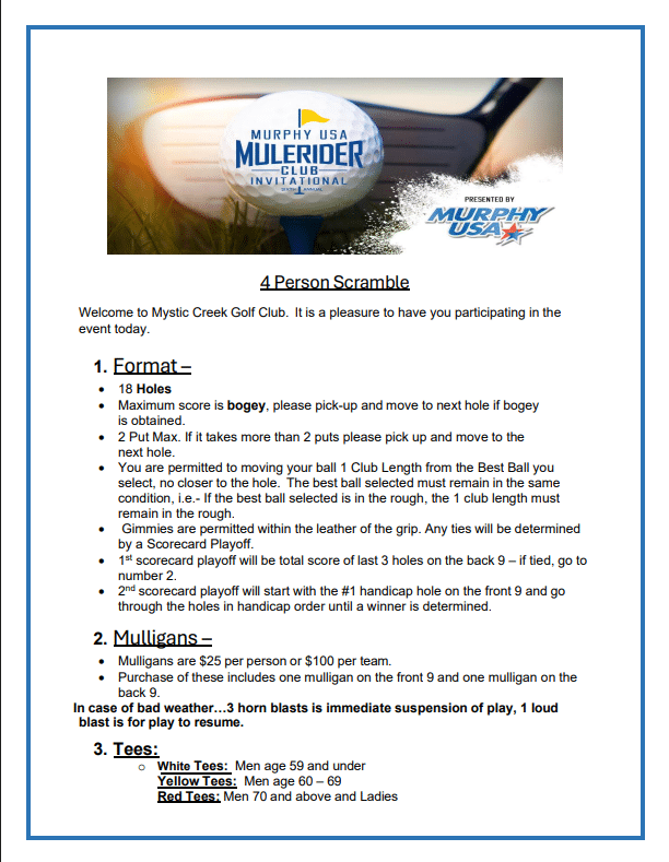 Afternoon Flight – 1 p.m. tee-off (Shotgun start)